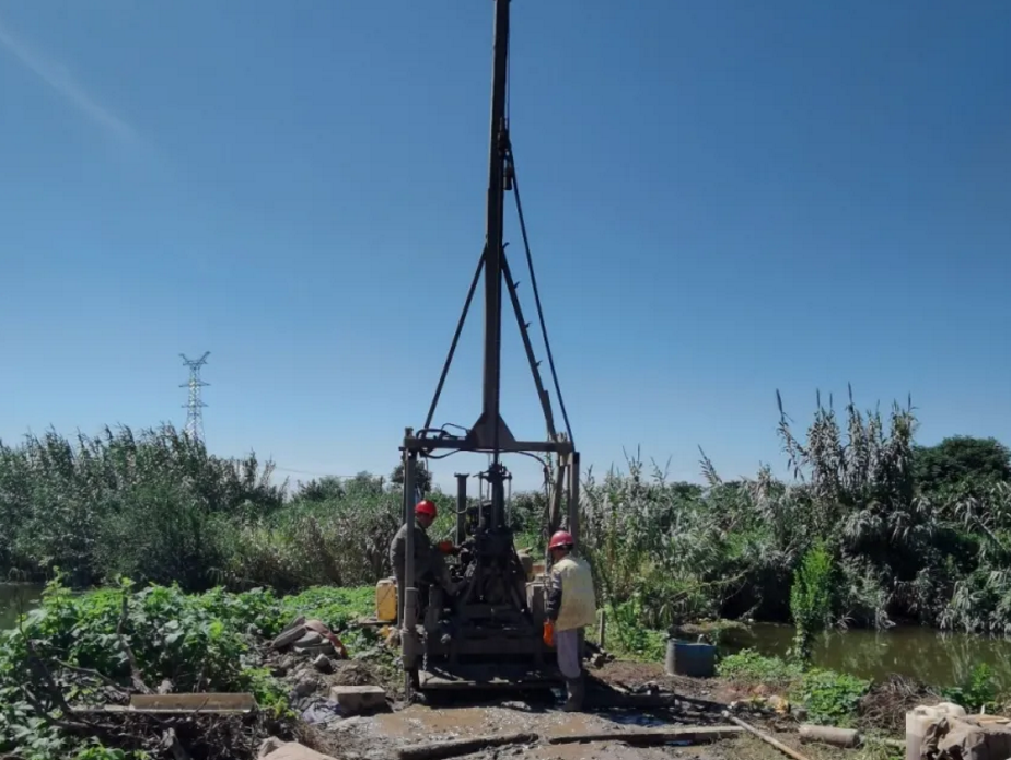 ▲高温下,设计单位工作人员进行现场勘探