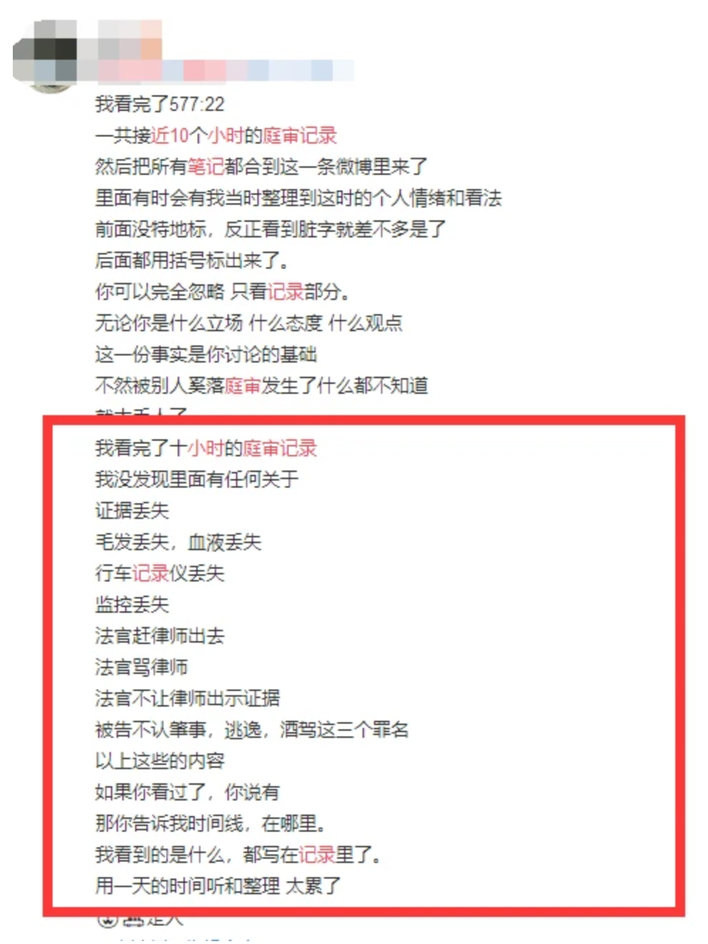 在质疑发酵成更大的舆论风暴前,有耐心网友完整看完了庭审录像,原原本本还原出近10个小时庭审的事实和真相: