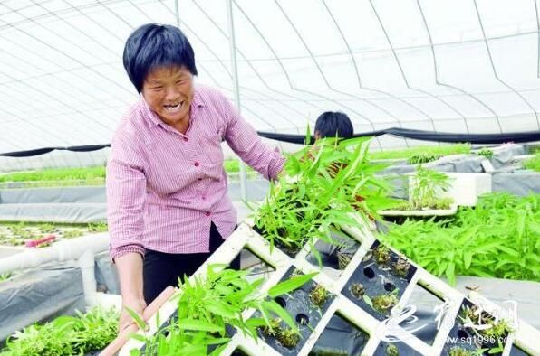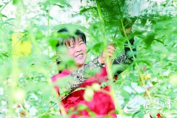 9月1日,在市湖滨新区峰山居委会一家农业公司内,当地村民葛宜珍在大棚里打理蔬菜。她说,每天只要5分钟路程就可以到公司上班,年工资近3万元,晚上下班后还能接孙女放学,既照顾到了家庭也增加了收入。