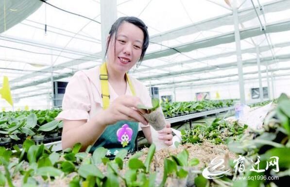 8月31日,在宿豫区侍岭镇蝴蝶兰基地内,当地居民张玉玖在进行蝴蝶兰育苗工作。以前她一直在家务农,三年前她到蝴蝶兰基地工作,不仅离家近,月收入4500元左右。