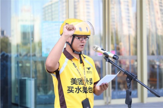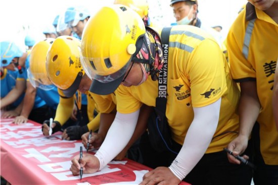 “我宣誓:坚决遵守道路交通安全管理规定,恪守职业道德,文明配送,礼貌行车……”启动仪式现场,宿迁市区“美团”“饿了么”“闪送”等外卖企业1500余名外卖骑手共同许下承诺,并进行了“模范配送在行动 文明交通我先行”签名活动。