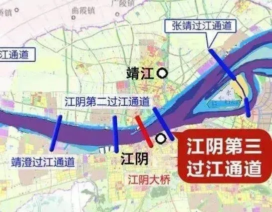 江阴第三过江通道位于江阴长江大桥下游约3.3公里处,全长7公里(含引桥),为新建公铁两用特大跨江大桥,大桥上层为双向八车道一级公路,设计速度100公里/小时,大桥下层四线铁路,它的建成能大大缓解江阴大桥的通行压力。