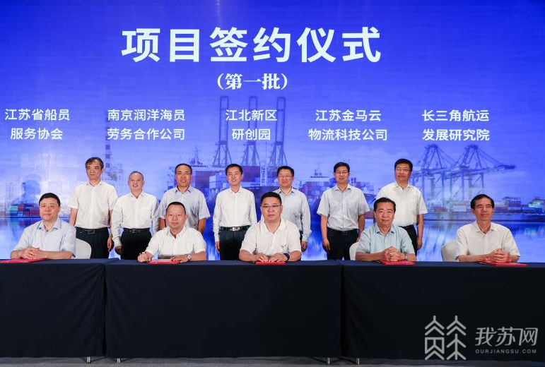 会上,南京江北新区产业技术研创园江苏省船员服务协会与南京润洋海员劳务合作有限公司、江苏金马云物流科技有限公司、长三角航运发展研究院,南京江北新区中央商务区与长江南京航道工程局,南京江北新区长芦街道与东华能源股份有限公司先后签约。