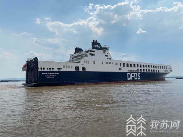 今天(4日),一艘南京金陵船厂建造的丹麦籍货滚船“法兰迪亚海路”轮(FLANDRIA SEAWAYS),在长江引航中心南京引航站雷胡根、杨旭辉等3名引航员的安全引领下,缓缓地驶离船厂码头出江远航。该船是南京金陵船厂为丹麦DFDS公司,按照英国劳氏船级社的标准建造,单船造价4.35亿人民币。这是今年新冠疫情爆发以来南京金陵船厂交付的第一艘货滚船,也是目前我国建造的最大长度货滚船。
