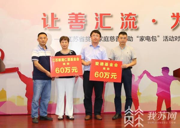 为关爱这部分困难群体,省民政厅等部门开展为贫困家庭慈善捐赠“家电包”活动。这批家电爱心包每个价值约600元,包括微波炉、小冰柜、电视机等家用电器。根据贫困家庭需求,选择其中一件或几件电器组合发放。参与捐赠的江苏新潮仁爱基金会负责人沈伟定说:“民政推荐出来名字,我们还是一家一家走访。助力扶贫,解决他们暂时的电器使用方面的困难。我们响应了民政厅的小家电包捐赠。基金会成立以来,我们一共捐赠出去3500万。”