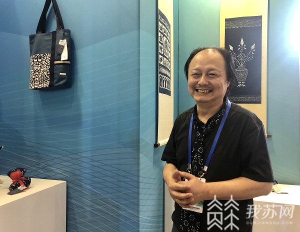 脱俗雅致的“蓝白风景”前,国家级非遗代表性传承人吴元新追求蓝印花布的现代化艺术表达,不断拓宽着花布审美表现力,“这种壁挂系列就是我们同韩美林合作的,融合了很多的岩画、传统的民间艺术,装置形式是很现代的。像包袋上面的变化,我们融入了深蓝、中蓝、浅蓝的艺术形式,包袋的这种装饰同我们蓝白的传统印染结合在一起。”