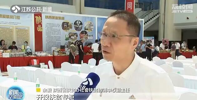 陕西省扶贫办社会扶贫协调中心副主任余毅:“我们将在江苏的对口帮扶下开设扶贫专柜,也会在江苏的各个超市开设消费扶贫专区,线上江苏发挥龙头企业苏宁和线上的很多平台,都会大量地销售陕西的扶贫产品。”