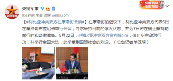 在摩洛哥的倡议下,利比亚冲突双方代表6日在摩洛哥布兹尼卡举行会谈,寻求维持目前的停火状态,并为7日将在瑞士蒙特勒举行的和谈做准备。8月22日,利比亚冲突双方宣布停火,停止所有敌对行动,并举行全国大选,此举受到国际社会的欢迎。(记者 单既明)
