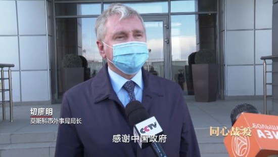 莫斯科市外事局局长 切廖明:感谢中国政府在我们如此艰难的时刻,提供咨询帮助,并且向我们捐赠医疗物资。