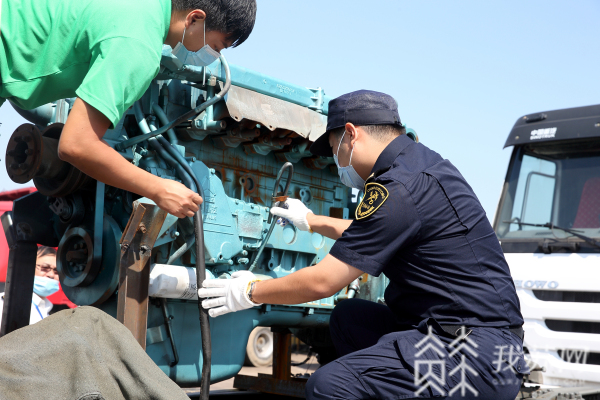 9月4日,南京海关所属连云港海关根据“中国重汽”商标权利人的扣货申请,对该关此前查获的2台带有“中国重汽”标识的牵引车旧发动机进行清点扣留。