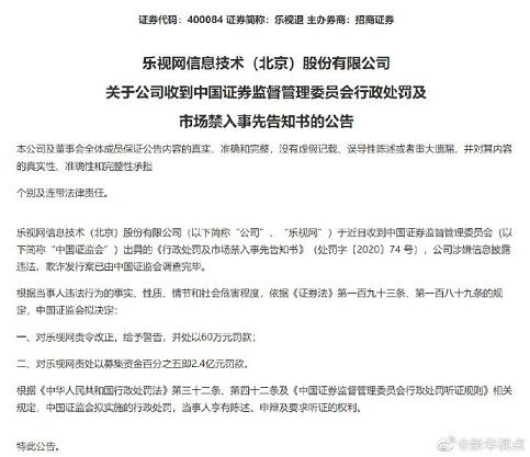 证监会拟对乐视网欺诈发行处以2.4亿元罚款