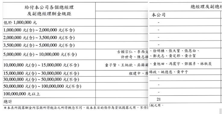 年报显示,公司酬金级别中,等级最高的为每年新台币500万元-1000万元,有10名高管在此列,其中就包括昆山世硕的法定代表人张天宝。
