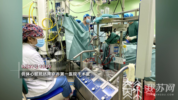 8月21日11:10,供体心脏抵达南京市第一医院手术室。