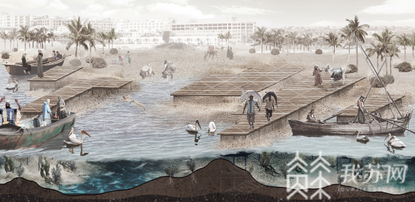 “我们通过查阅大量文献资料及新闻报道,花了一个月进行层层筛选,最后确定了设计主题。”开学刚升入研二风景园林专业的周悦向我们介绍道,“苏伊士运河扩建后出现了生物入侵问题,我们希望利用所设计的景观装置物来恢复已改变的生态系统特性、恢复盐度和生境,并防止进一步的生物入侵。”
