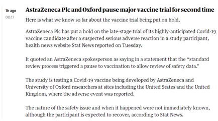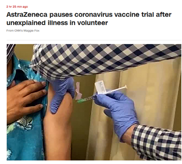 CNN:阿斯利康暂停新冠疫苗试验,因志愿者出现不明原因疾病
