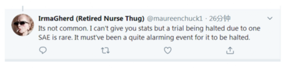 有人表示非常吃惊,“这并不常见。我不能给你统计数据,但一个试验由于严重不良事件被叫停是罕见的。其暂停一定是一个相当令人震惊的事件。”↓