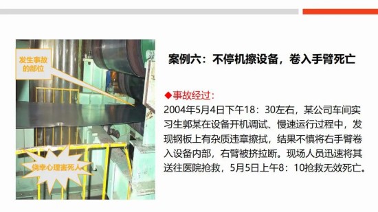 5.2019年9月9日16时左右,河南平顶山市舞钢市舞阳钢铁公司第一轧钢厂在主轧线停产检修时,转钢辊道突然转动,将站在转钢辊道上的4人卷入辊道,造成2死2伤。