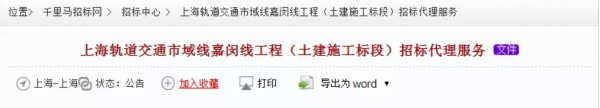 在8月31日,招标代理服务商已经开始对《上海轨道交通市域线嘉闵线工程(土建施工标段)招标代理服务》进行招标,这意味着上海申铁将开始对嘉闵线进行项目前期准备工作。