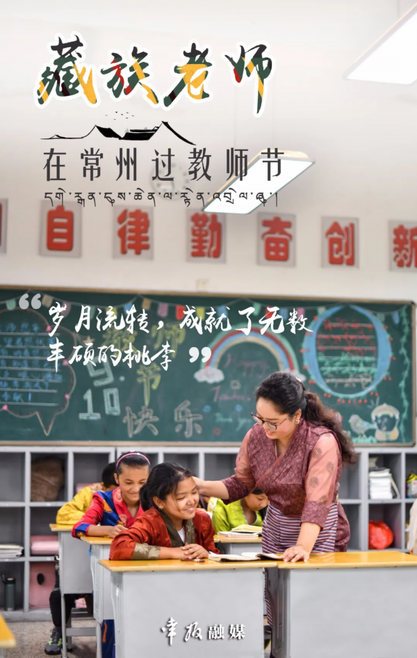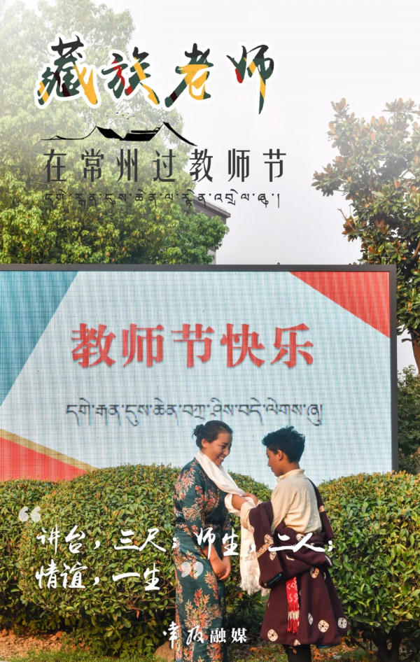 5位老师要在常州西藏民族中学工作三年,他们和常州当地的老师一起,承担着450多名藏区学生的初中阶段教学任务。藏族老师主要教授藏语,每周每名学生至少上要4节藏语课,这些老师的工作强度比在家乡重了很多。加上这里的孩子远离家乡父母,全校50多名汉藏两族老师一起成为学生24小时的监护者。到常州这段时间,大家还没有机会出门,这个教师节也是在工作中度过。“听说市中心红梅公园很漂亮,天宁寺很雄伟,有时间一定要去看看”。