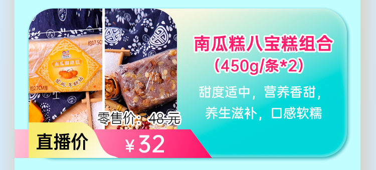 甜度适中的南瓜糕被誉为“黄金糕”,营养香甜,养生滋补,软糯可口,排毒养颜,健脾和胃。最甜的八宝脚踏糕,内含新疆阿克苏大核桃和红枣,滋补可口。