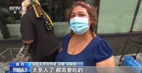 领取免费食物者 迪娜·塞佩纳:队排得太长了,太多人了,都需要吃的。我们没了工作,被裁员了。