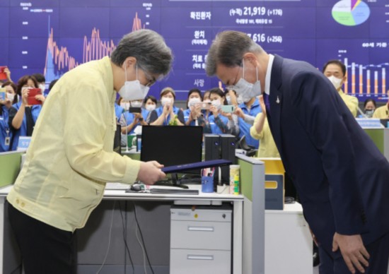 韩联社称,此举可以看出文在寅对郑银敬充满信任和期待。有观点认为,在与“战时状态”同等危急的新冠疫情爆发期,总统亲自前往一线颁发任命书,不仅可以免去新任厅长长途跋涉之苦,还可以大大鼓舞疾病管理厅的工作士气。值得关注的是,郑银敬当天还打破新任官员携家人参加任命仪式的惯例,选择与同事一起出席。