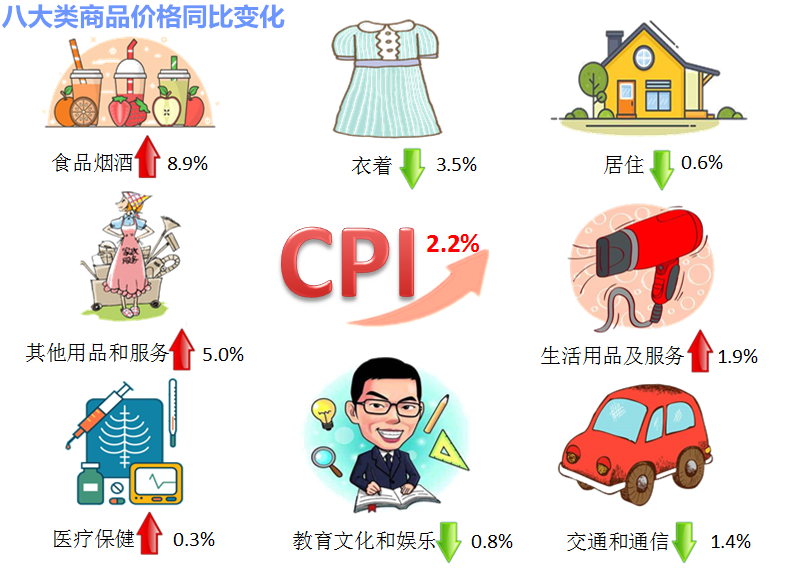 教育文化和娱乐价格同比下降0.8%,其中教育上涨2.1%、文化娱乐下降4.2%。