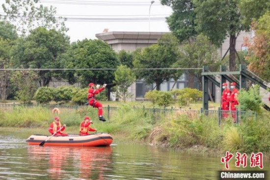图为演练涵盖水上、航空、地面等多种类别 应急管理部自然灾害工程救援武汉基地供图