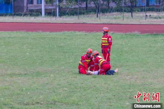 图为参演人员正在进行演练 应急管理部自然灾害工程救援武汉基地供图
