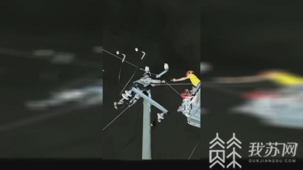 救援人员和地面群众不停喊话,希望男子停止冒险的举动。而令人意想不到的是,该男子一步步爬向10千伏线路。无奈之下,常州供电公司只好拉停10千伏高压线。