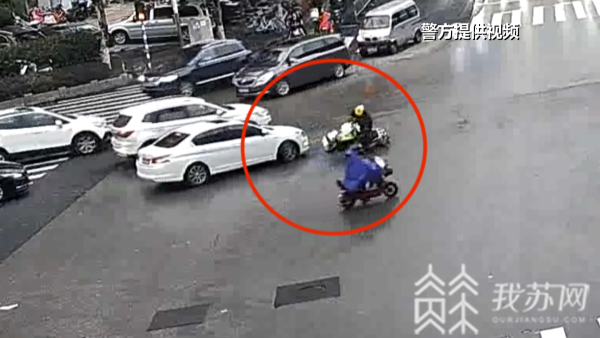 今年6月16日18时20分,一名外卖骑手骑电动车,沿南京黑龙江路由西向东闯红灯通过一处路口,与一辆正常左转的小车发生碰撞,外卖骑手受伤,大腿骨折,因为闯红灯,他还要对这起事故负主要责任。