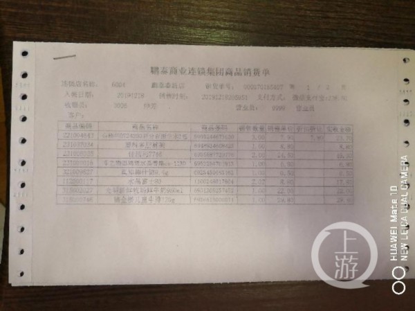 ▲宜春市奉新县鹏泰购物广场消费清单。图片来源/家属提供