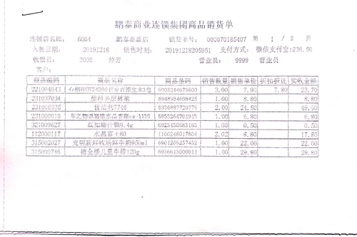 三笔转账用于消费。2019年12月18日,罗细妹微信账户在奉新县鹏泰购物商场消费236.5元。根据商场提供的购物清单,商品有纸巾、牙膏、儿童牛排、儿童袜、牛奶、棒棒糖、苹果等。