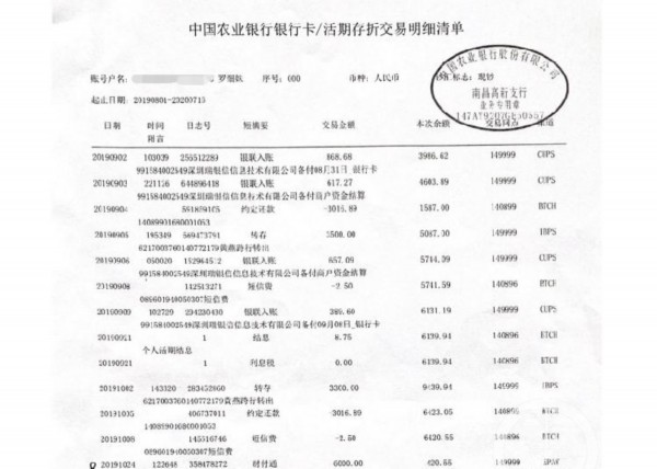 ▲罗细妹名下的农行卡在其被羁押期间出现了多笔消费记录。图片来源/家属提供