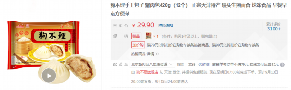 跟堂吃的高价相比,狗不理速冻包子价格平易近人得多。电商平台上,销量明星手工猪肉包12个价格才29.9,平均2.5元一个,跟市面上一般包子价格相当。