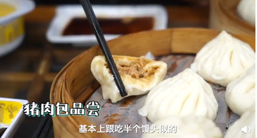 视频中,@谷岳 称该店在大众点评网上的评分是2.85分,在王府井地区的餐厅中评分最低。博主走进餐厅,花60元买了一笼8个的酱肉包,又花38元买了一笼8个的猪肉包。最后,@谷岳总结说,酱肉包特别腻、没有用真材实料;而猪肉包则是皮厚馅少,面皮粘牙。