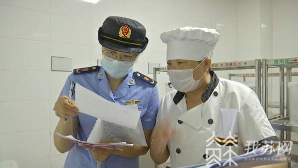 市场监督部门对食堂的检查,共有十多个项目。栖霞区市监局食品科科长顾萍,首先查看了食堂食材采购情况,包括原材料的进货查验、索证索票的落实情况。