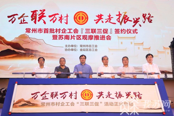 我苏网讯 为深入贯彻落实省委、省政府关于开展“万企联万村 共走振兴路”行动的决策部署,9月11日,“万企联万村、共走振兴路”常州市首批村企工会“三联三促”联建活动签约仪式暨苏南片区观摩推进会在常州市金坛区举行,标志着常州市村企工会结对共建活动正式起航。