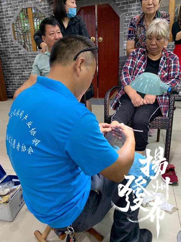 记者了解到,扬州市休闲文化产业协会、扬州市匠心·追梦人志愿者协会从2017年开始举办这样的爱心公益活动,吸引了包括陆枫、许永春、何巨元等扬州修脚名师的参与,他们默默无闻为有脚病的老年人定期免费修脚,将文明藏在街巷里,坚持不懈提供爱心服务。
