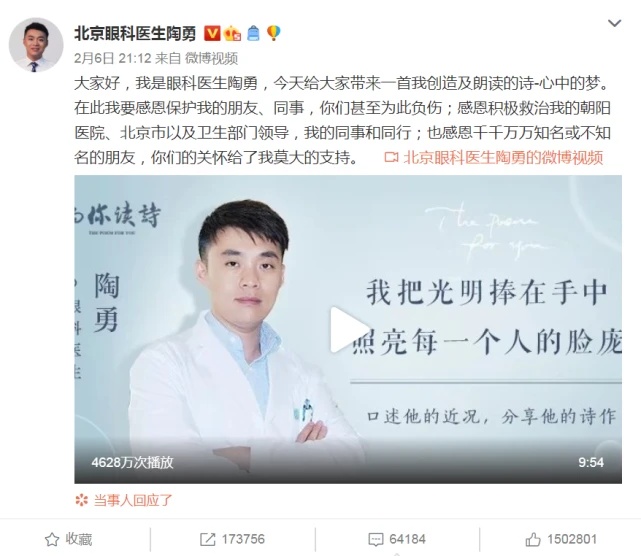 他把这个故事写在微博上,网友看了之后感动地说,“以后我再对人性失望的时候,我就来看看陶勇医生以及他分享的故事。医院真的是见证人性的地方,有一切答案。我看到了人性的坚持和美好。”