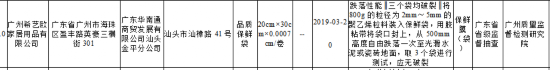 其中,由惠州市盛广达实业有限公司生产、广东华南通商贸发展有限公司揭阳榕城分公司销售的深圳筷三聚氰胺单体迁移量(4%乙酸)不符合食品相关产品安全国家标准规定。该产品规格型号为M603,生产日期为2018年8月3日,不合格项目为三聚氰胺单体迁移量(4%乙酸),检验结果为4.2mg/kg,标准值为≤2.5mg/kg,检验机构为广东省潮州市质量计量监督检测所。