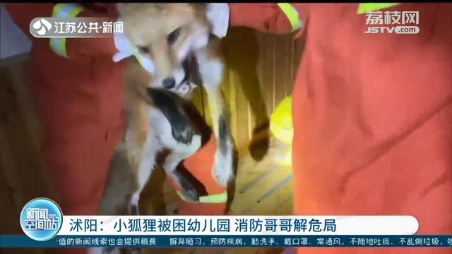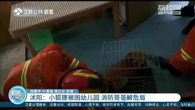 当天下午五点,沭阳县119指挥中心接到报警电话称,城北小区幼儿园出现了一只类似犬类的动物。消防救援人员立刻赶到现场。在幼儿园休息室的角落中,一只通体呈黄色的动物正看着救援人员,眼神中透露着一丝丝惊恐。从外形判断,应该是只狐狸。