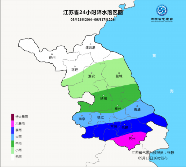 16日傍晚到夜里沿江和苏南地区阴转大到暴雨,苏南南部局部大暴雨;淮北地区阴有时有小雨,其它地区阴转中雨。