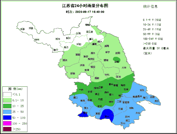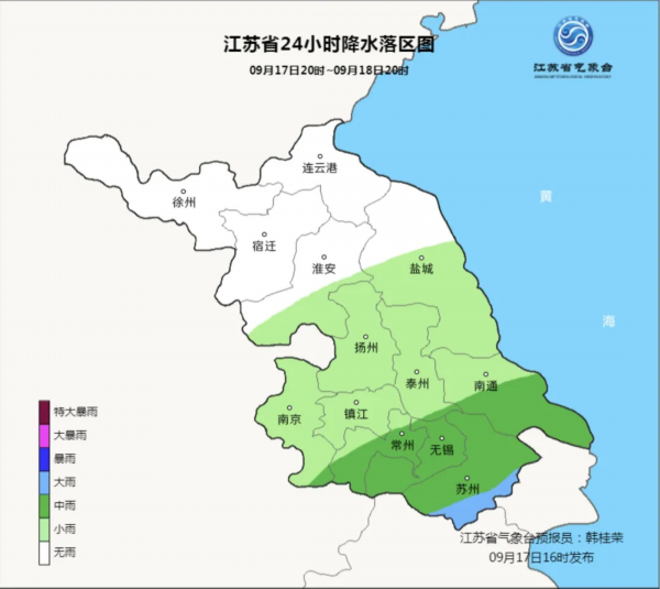 9月19日苏南南部地区多云到阴有时有小雨,其它地区晴到多云,9月19日最低温度:淮北地区14-15度,其它地区16度左右,最高温度:淮北地区27-28度,苏南南部地区22度左右,其它地区25~26度。