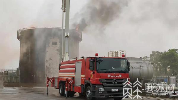车间旁边的油罐已经着火,在真实的战斗情况中随时可能发生爆炸,加上旁边车间的氯气泄漏,极有可能造成次生伤害,消防指战员迅速展开行动,控住火情。最终圆满完成此次演习。