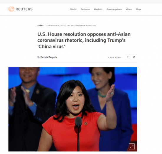 根据决议提出者格蕾丝·孟办公室发布的一篇新闻稿,她表示:“众议院需要采取强硬与公开的立场,反对在这场公共卫生危机期间在全国各地发生的令人震惊的不宽容、歧视与暴力(事件)。今天,众议院就这样做了。”
