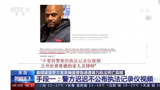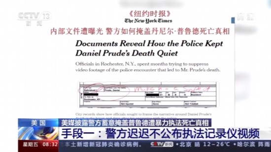 《纽约时报》报道称,自普鲁德死亡事件3月发生以来,警方就一直不公开涉事警察的执法记录仪视频,不让公众了解普鲁德死亡的真相,直到9月初,普鲁德的家人才拿到事发时的现场视频,并将之公布于众。