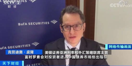 美银证券亚洲利率和外汇策略联席主管 克劳迪奥 皮隆:人民币的国际化是个非常重要的因素,在9月24日左右,富时罗素会对投资者进入中国债券市场给出指引,这可能会为中国纳入其全球政府债券指数铺平道路,可能会带来1400亿美元的资金流入。