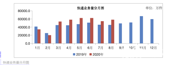 今年8月份,全省快递服务企业业务量完成5.8亿件,同比增长28.6%;业务收入完成57.2亿元,同比增长15.0%。