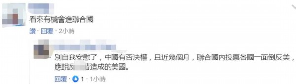 不过,也有岛内网友窃喜:看来有机会进联合国了。但随后有网友留言回复说:别自我安慰了,中国(大陆)有否决权。